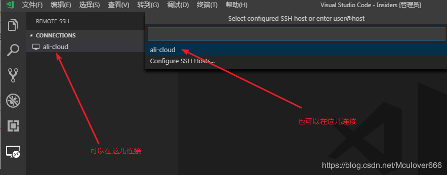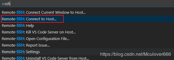 使用Ctrl+Shift+P打開命令面板,輸入ssh,選擇Connect to Host: