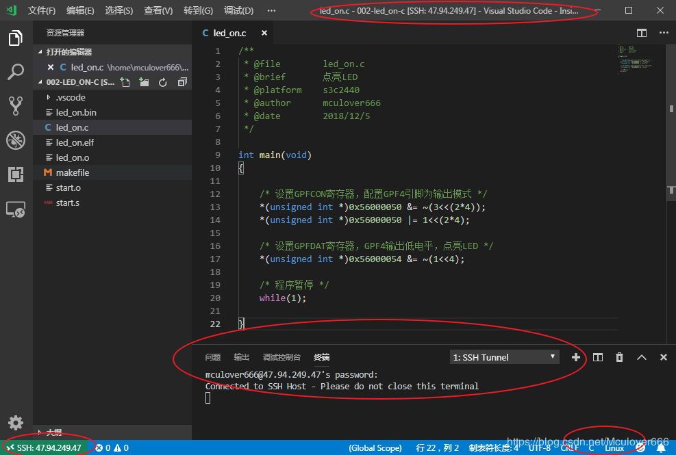 - 使用SSH遠(yuǎn)程終端,在服務(wù)器上編譯出可執(zhí)行文件;