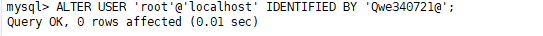 ALTER USER 'root'@'localhost' IDENTIFIED BY 'Qwe340721@';