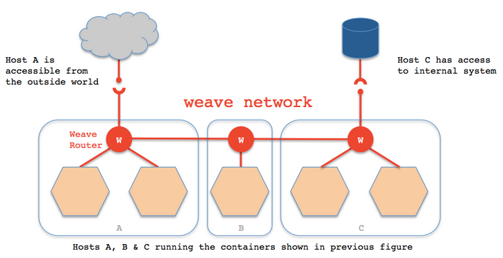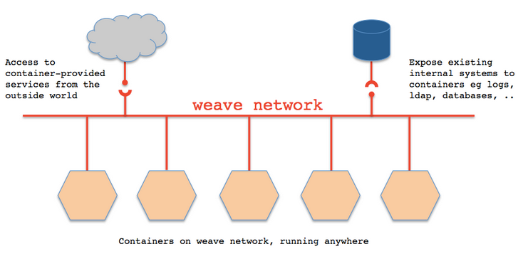 應(yīng)用在使用該網(wǎng)絡(luò)的時(shí)候就像所有的容器都在同一個(gè)交換機(jī)網(wǎng)絡(luò)下一樣,不需要配置端口映射、連接等等,容器中的應(yīng)用提供的服務(wù)在weaver網(wǎng)絡(luò)中可以被外部世界訪問(wèn),不論你的容器運(yùn)行在哪里。同樣的,已經(jīng)存在的系統(tǒng)應(yīng)用也可以暴露給容器中的應(yīng)用來(lái)調(diào)用,而不用擔(dān)心內(nèi)部應(yīng)用運(yùn)行的位置。