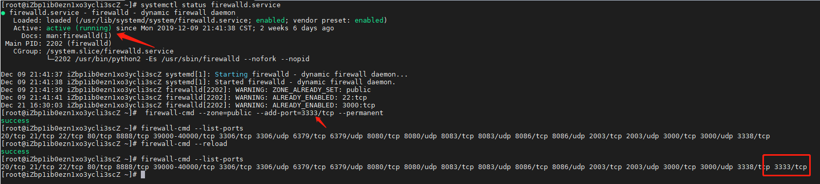 systemctl status firewalld.service - 開放端口(開放后需要更新規(guī)則才能生效):