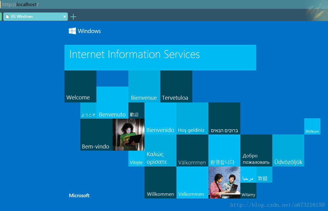 4、組件安裝完成之后,在地址欄輸入localhost即可打開(kāi)Win10 自帶 IIS 默認(rèn)網(wǎng)站。