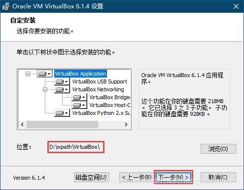 建議安裝非C盤,點(diǎn)擊“瀏覽”按鈕,自定義安裝路徑,本人安裝路徑為“D:\wpath\VirtualBox\”,點(diǎn)擊“下一步”