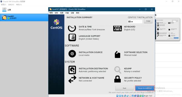 點(diǎn)擊“Begin installation”按鈕