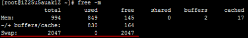 5、查看生效的swap分區(qū)大小,命令:”free -m“
