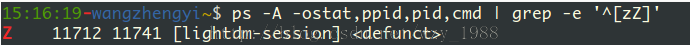 不知道為什么我注銷之后重新登錄還有這個(gè)僵尸進(jìn)程,懷疑是否是LightDM的bug,不過(guò)Ubuntu12.04 desktop display manager就是LightDM,所以kill -HUP至少起到了注銷的作用,不用重啟了