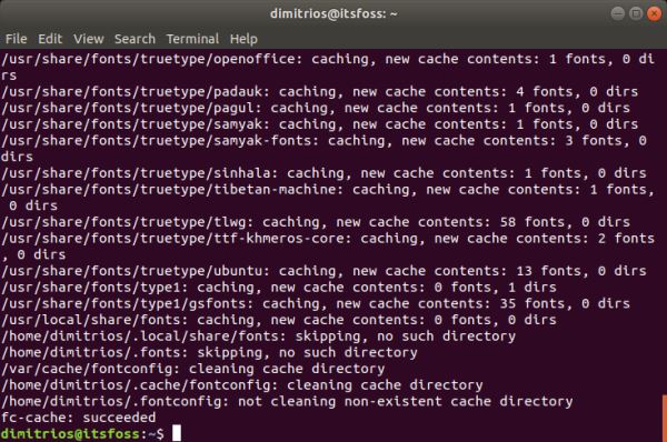 當安裝完成后,你應(yīng)該使用下面的命令來更新字體緩存: