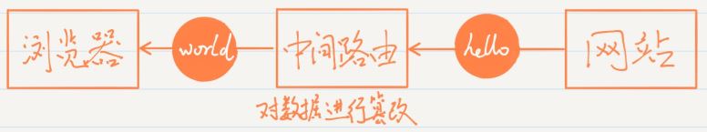另外,傳輸?shù)臄?shù)據(jù)還有可能被一些別有用心的人篡改,導(dǎo)致瀏覽器與網(wǎng)站收發(fā)的內(nèi)容不一致。示意圖如下:
