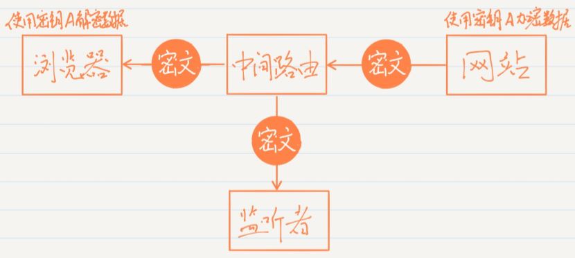 可以看到,由于我們?cè)诰W(wǎng)絡(luò)上傳輸?shù)臄?shù)據(jù)都是密文,所以不怕被監(jiān)聽(tīng)者獲取到,因?yàn)樗麄儫o(wú)法得知原文是什么。而瀏覽器收到密文之后,只需要使用和網(wǎng)站相同的密鑰來(lái)對(duì)數(shù)據(jù)進(jìn)行解密就可以了。