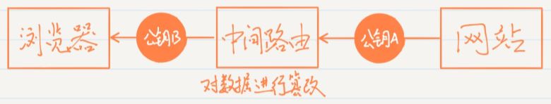 那么,上述的工作機(jī)制你認(rèn)為已經(jīng)非常完善了嗎?其實(shí)并沒(méi)有,因?yàn)槲覀冞€是差了非常關(guān)鍵的一步,瀏覽器該怎樣才能獲取到網(wǎng)站的公鑰呢?雖然公鑰是屬于公開(kāi)的數(shù)據(jù),在網(wǎng)絡(luò)上傳輸不怕被別人監(jiān)聽(tīng),但是如果公鑰被別人篡改了怎么辦?示意圖如下: