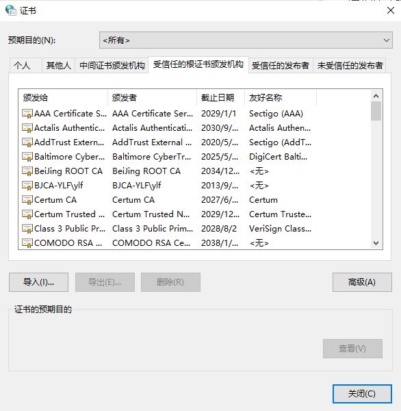 Windows系統(tǒng)的內(nèi)置證書(shū)如下: