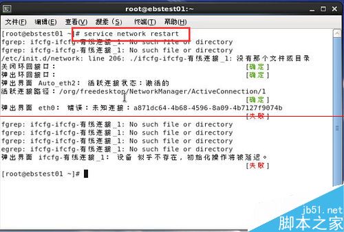 3、樣就完成了用service network restart命令重啟網(wǎng)卡的操作。