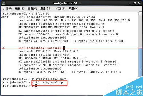 3、輸入ifconfig eth3 up,重新加載eth3網(wǎng)卡。