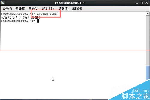 1、連接到命令行界面。輸入ifdown eth3,對網(wǎng)卡eth3進(jìn)行卸載。