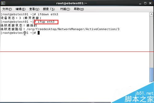 2、輸入ifup eth3,對網(wǎng)卡eth3進(jìn)行重新加載。