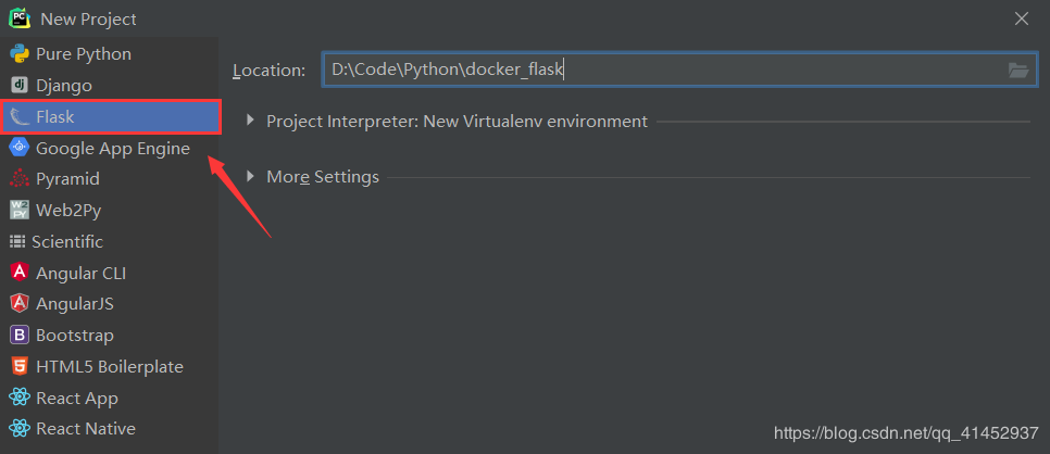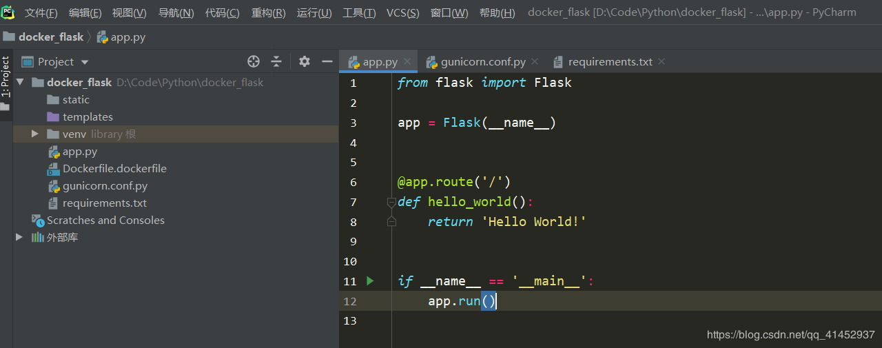 (1)在PyCharm里新建一個(gè)Flask應(yīng)用docker_flask