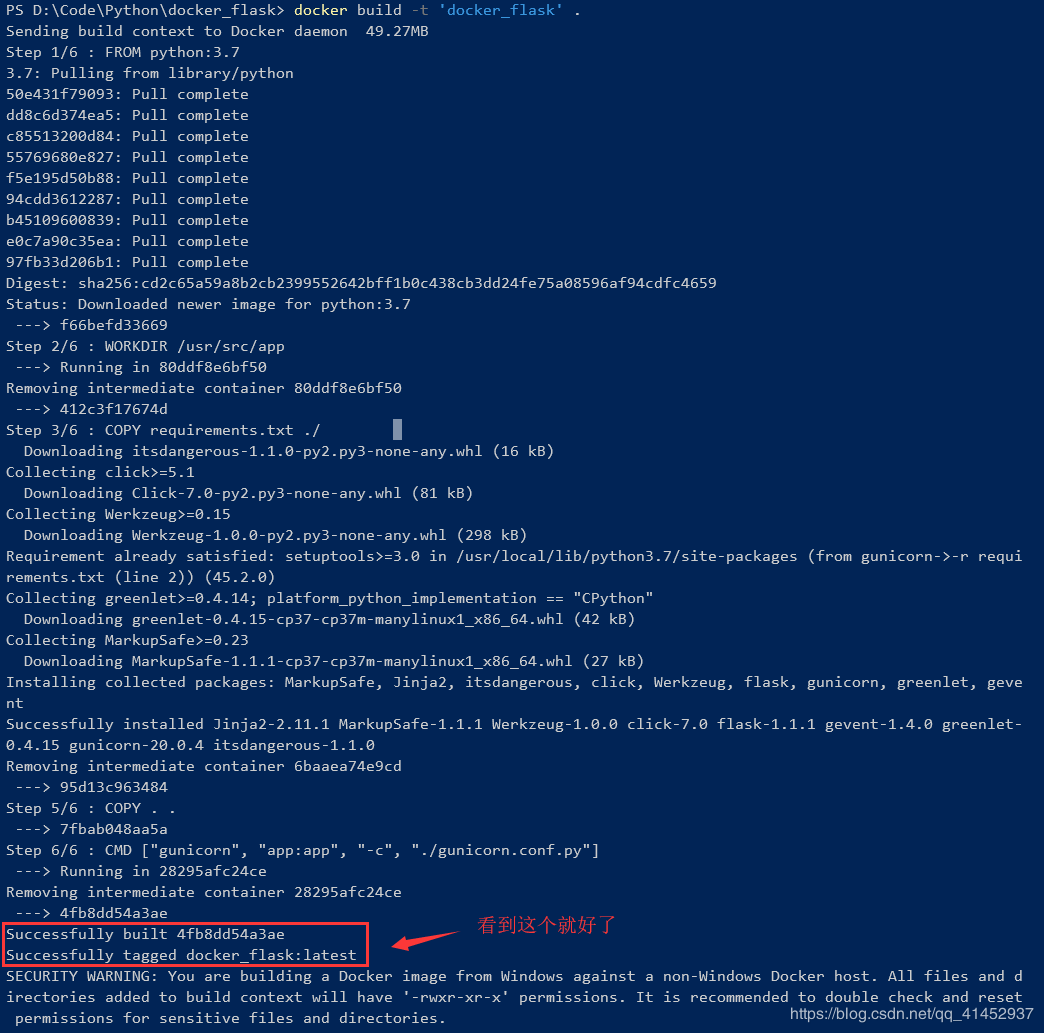 FROM python:3.7 WORKDIR /usr/src/app COPY requirements.txt ./ RUN pip install -r requirements.txt -i COPY . . CMD ["gunicorn", "app:app", "-c", "./gunicorn.conf.py"] #前一個(gè)app是python啟動(dòng)的文件名,即app.py;后一個(gè)是flask項(xiàng)目里預(yù)啟動(dòng)的應(yīng)用名