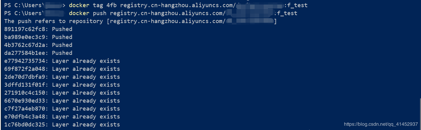 docker tag [鏡像的ID] registry.cn-hangzhou.aliyuncs.com/命名空間/倉(cāng)庫(kù)名稱:[鏡像版本號(hào)] docker push registry.cn-hangzhou.aliyuncs.com/命名空間/倉(cāng)庫(kù)名稱:[鏡像版本號(hào)]