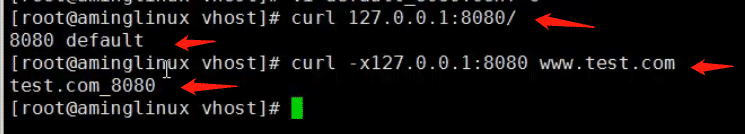 如圖,使用 curl 訪問 127.0.0.1:8080 虛擬主機(jī)