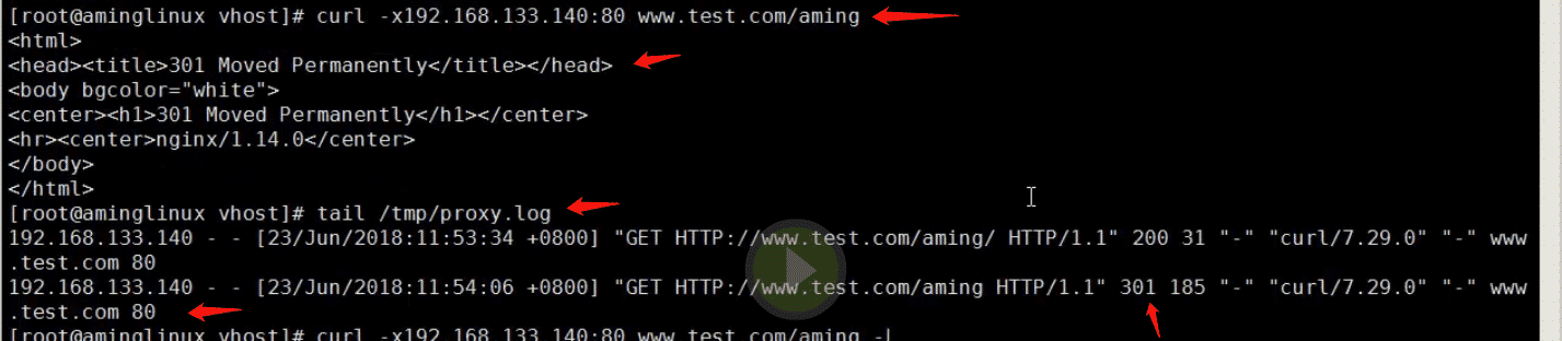 如圖,再使用 curl 訪問 127.0.0.1:80 域名 www.test.com