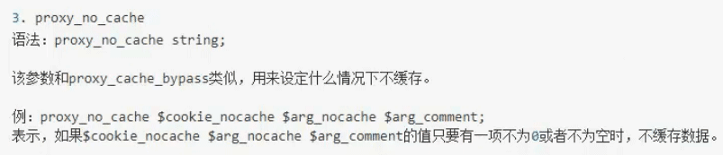 比如 proxy_cache_bypass $cookie_nocache $arg_nocache $arg_comment;