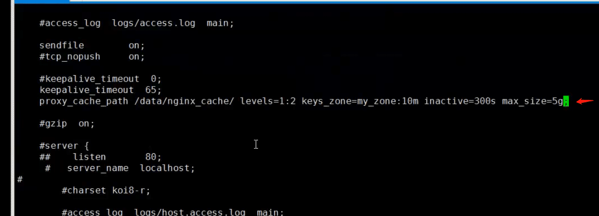 比如這里設(shè)置為 5g ,上面設(shè)置的目錄 /data/nginx_cache/