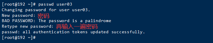 方法一:root修改其他用戶(hù)(user03)密碼。