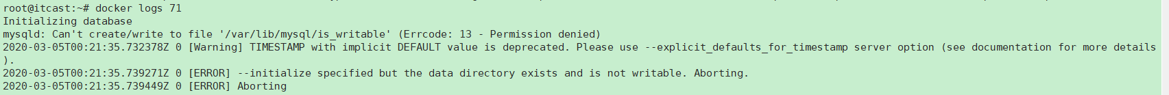 日志報(bào)錯(cuò)說我沒有對(duì)容器中/var/lib/mysql目錄下的創(chuàng)建和寫權(quán)限.