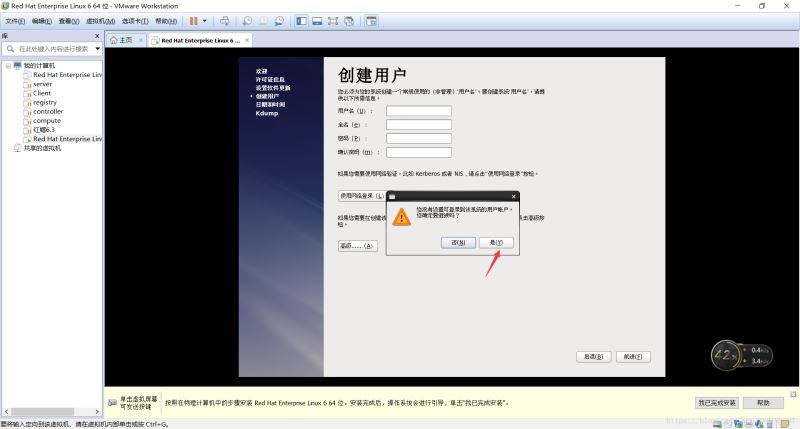 40.如果不填的話就會出現(xiàn)是否繼續(xù)。我們選擇是,這樣的話我們進入虛擬機的終端就直接是root用戶。