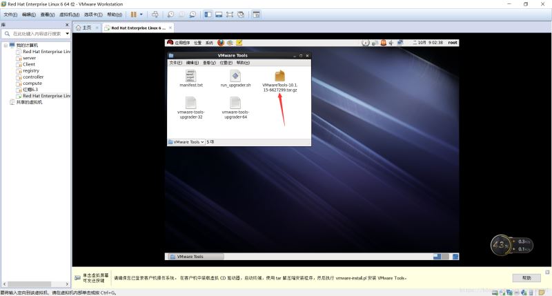53.輸入tar zxf VMwareTools-10.1.15-6627299.tar.gz 這個命令時解壓文件,