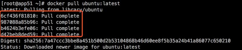 從倉(cāng)庫(kù)pull一個(gè)ubuntu鏡像,結(jié)果顯示總共拉取了4層鏡像如下: