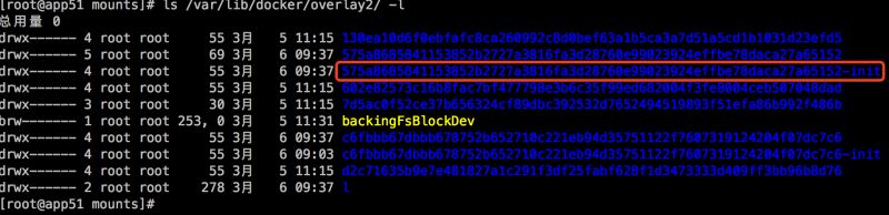 可以看到initID是在mountID后加了一個(gè)-init,同時(shí)initID就是存儲(chǔ)在/var/lib/docker/overlay2/的目錄名稱(chēng):