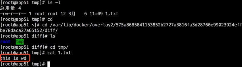 此時(shí)到宿主的merged目錄就能看到對(duì)應(yīng)的文件: