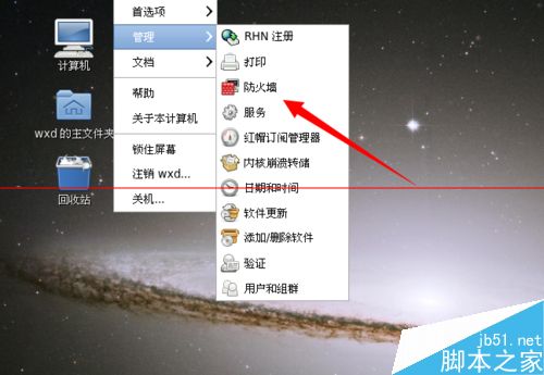 2、在彈出的菜單欄中,依次點擊【管理】,【防火墻】選項