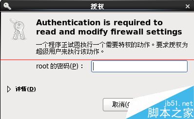 3、進(jìn)入防火墻界面,輸入用戶密碼,進(jìn)行安全驗證(Linux所謂的安全性,你懂的)