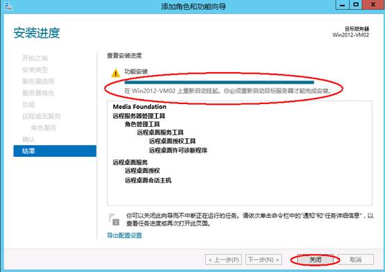 1.7. 在以下界面選擇安裝 ,安裝完成后,出現(xiàn)以下界面提示需重啟服務(wù)器,在下面界面上點(diǎn)擊關(guān)閉然后重啟計算機(jī)。