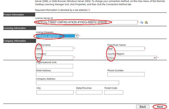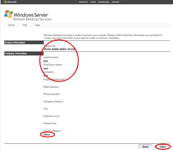 2.5 在下面界面中,輸入“產(chǎn)品ID:00184-90000-00001-AT259”,按下圖填寫所需信息后,點(diǎn)擊下一步。