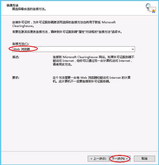 3.2 在連接方法處選擇WEB 瀏覽器,然后點(diǎn)擊下一步。