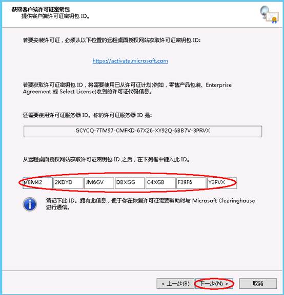 3.3 輸入許可服務(wù)器ID:GCYCQ-7TM97-CMFKD-67X26-XY92Q-6BB7V-3PRVX,然后點(diǎn)擊下一步。