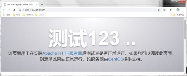 提示:從ansible-playbook 對(duì)playbook的執(zhí)行狀態(tài)來(lái)看是成功了,接下來(lái)我們直接使用瀏覽器來(lái)訪(fǎng)問(wèn)192.168.0.10,看看httpd是否已經(jīng)能夠正常訪(fǎng)問(wèn),如果能正常訪(fǎng)問(wèn)說(shuō)明httpd已經(jīng)安裝好了