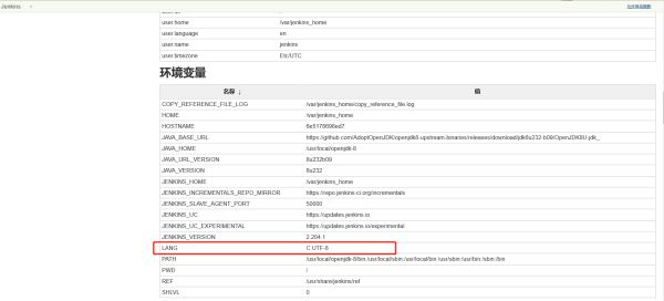 后記,可能是容器里面需要設(shè)置下語言,jenkins系統(tǒng)設(shè)置全局屬性語言LANG = C.UTF-8有關(guān)系。