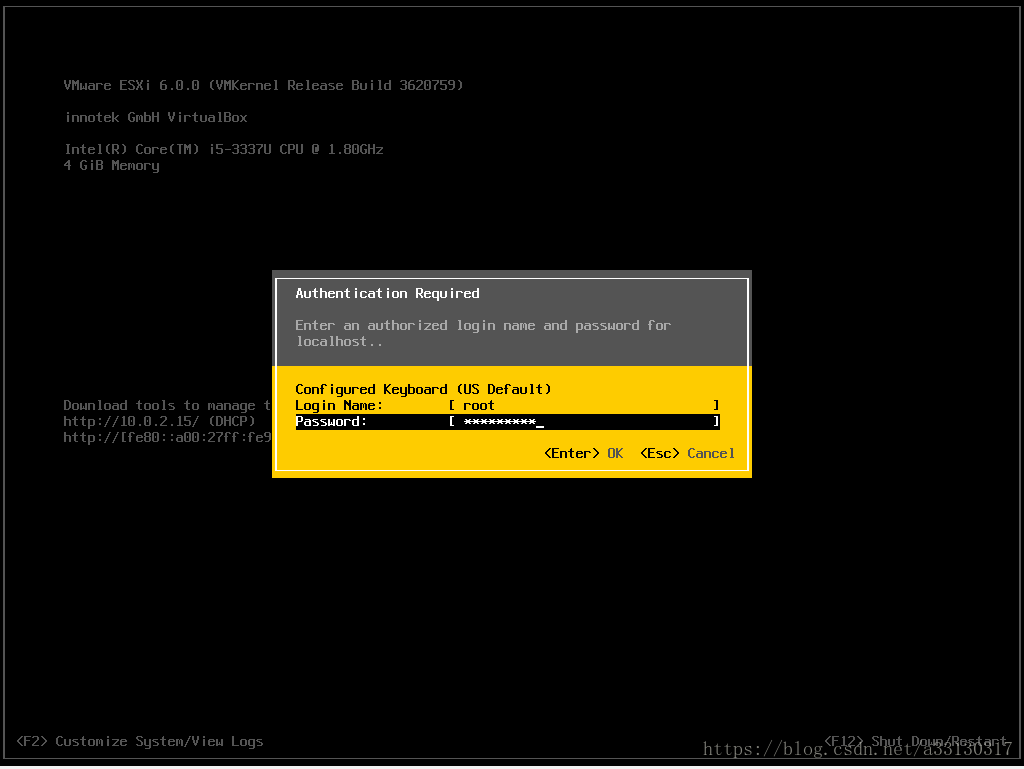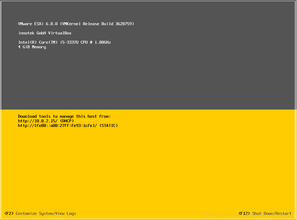 9. 重啟后,系統(tǒng)會(huì)自動(dòng)進(jìn)入EXSI 6.0 ,默認(rèn)界面如下: