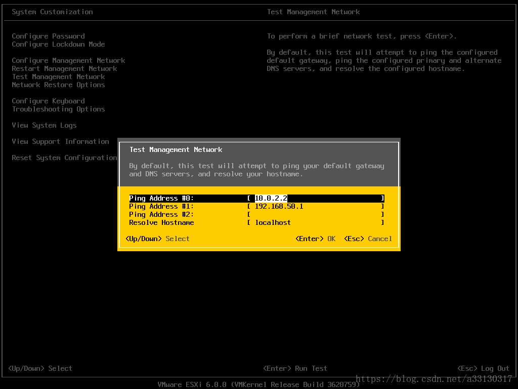 14. 配置好了網(wǎng)絡(luò)后,可以通過(guò)TestManagement network選項(xiàng)來(lái)測(cè)試網(wǎng)絡(luò)是否暢通