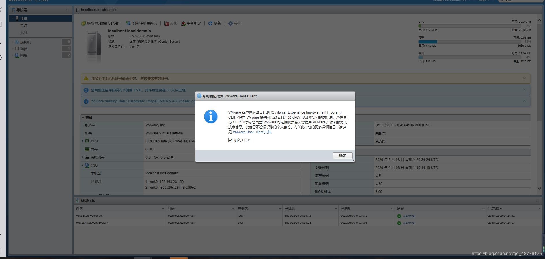 ESXI6.5 安裝完之后可以使用Web界面進(jìn)行訪問