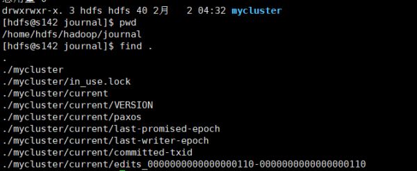 執(zhí)行完后查看s142,s143,s144是否有edit數(shù)據(jù),這里查看生產(chǎn)了mycluster目錄,里面有編輯日志數(shù)據(jù),如下: