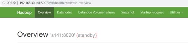此時(shí)在瀏覽器中訪問http://192.168.30.141:50070/和http://192.168.30.146:50070/你會發(fā)現(xiàn)兩個(gè)namenode都為standby