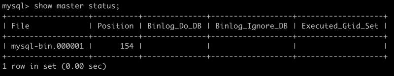 從這里我們得到兩個(gè)信息File和Position的值,我這里分別是mysql-bin.000001和154。