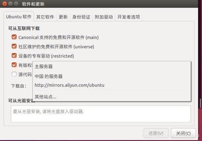在搜索里找到軟件和更新,里面可以切換下載源,我選的是阿里云的。