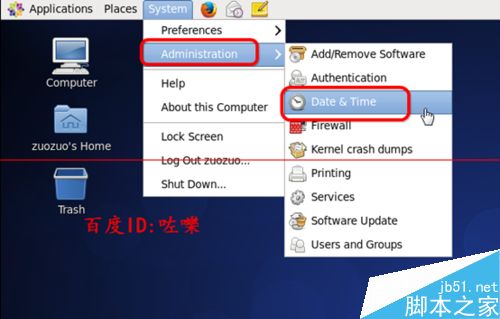 1、如果對(duì)命令行不熟悉,也可以通過圖形界面設(shè)置來實(shí)現(xiàn)系統(tǒng)時(shí)間同步。找到系統(tǒng)工具----管理員功能選項(xiàng)---date\時(shí)間和日期