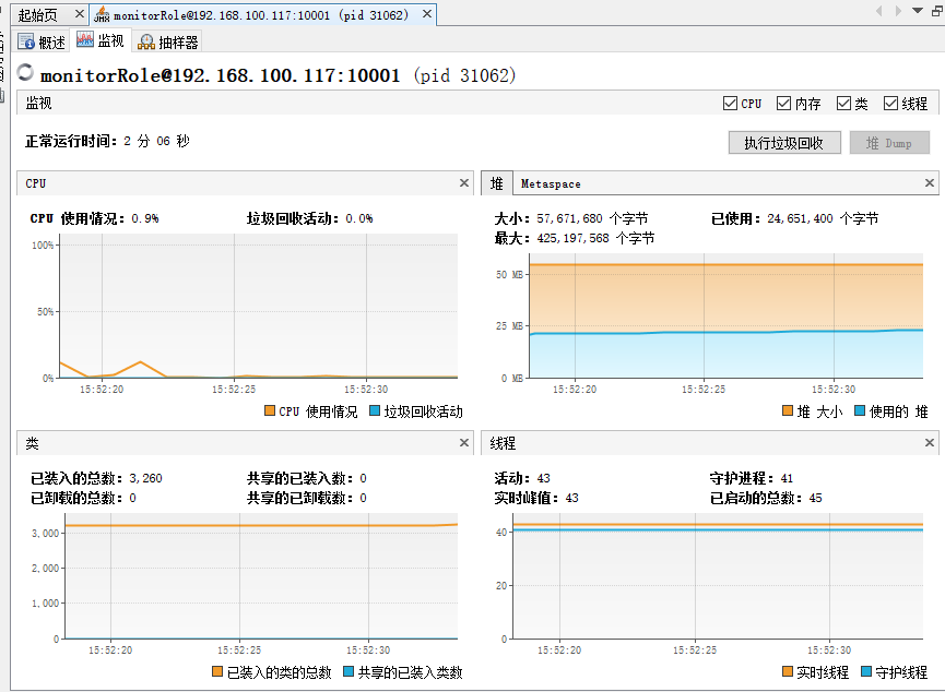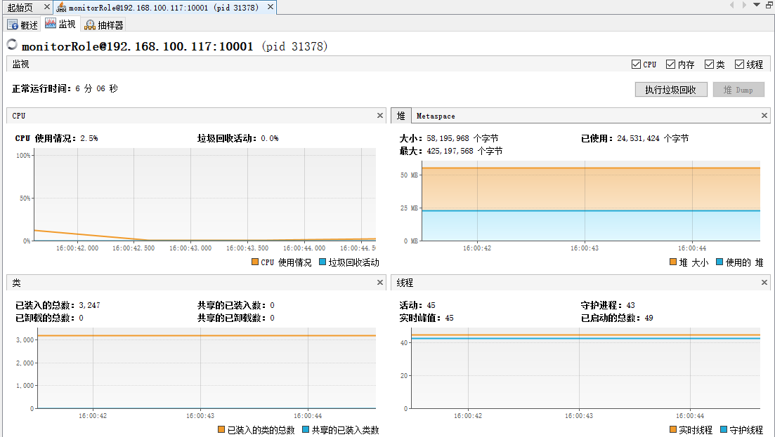4.1、做完上面操作,使用jdk自帶的jvisualvm.exe連接,可以在windows下測(cè)試